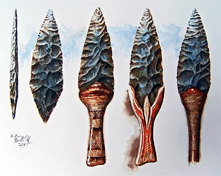 Their weapon making technology was very unique, which is why they are easily identifiable to experts in the field; their bifacial arrowheads and spears featured a leaf-like design that was made with a technique called pressure flaking.